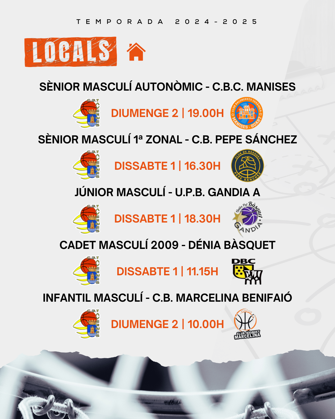 🗓️ PARTITS JORNADA 1 I 2 DE MARÇ | LLIGA REGULAR FBCV I LLIGA TAVERNES 🗓️