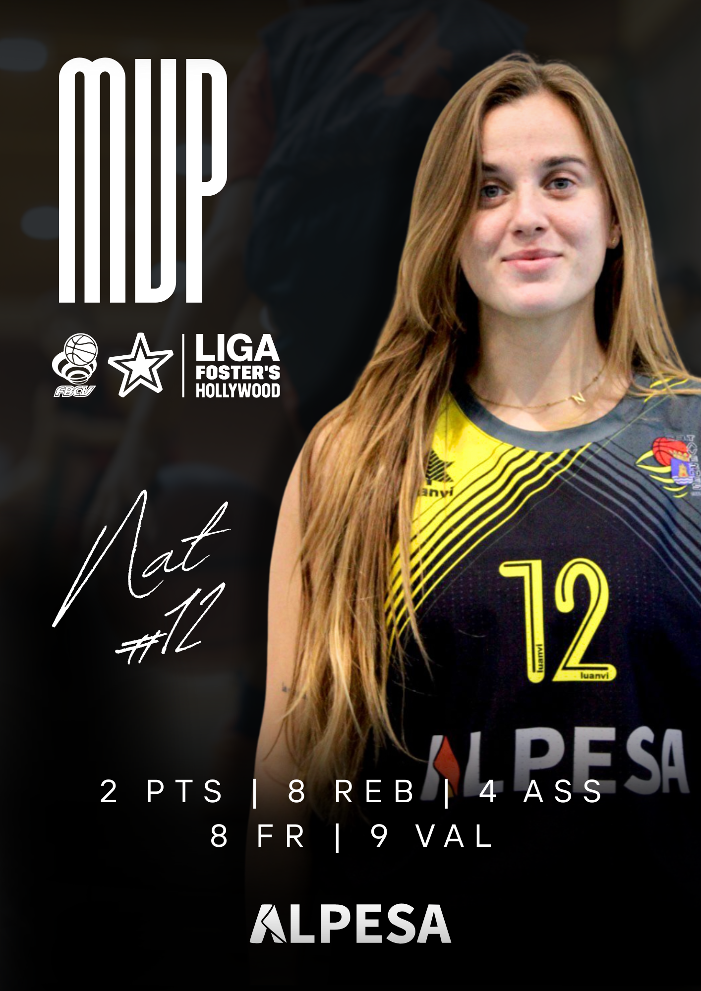 ⛹🏽♀️ Natàlia Verdú Garés ⌚️ 22 minuts 🎯 2 punts (2 TL) 🎁 4 assistències 🧱 8 rebots 📊 9 valoració